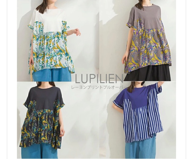 ストライプ、花柄のデザインプルオーバー レーヨンだから涼しくひんやりとした触感で、快適な着心地です 【Lupilen】 Lupinus(ルピナス)+riant(リア)+Lien(リアン) ルピナスの花言葉である「安らぎを与える」と リア(うれしい・楽しい・笑う)とリアン(絆)を合わせた造語 肩の力が自然に抜けるようなナチュラルカジュアルウェアを提案しております 【サイズ】 フリー 着丈80cm 胸囲73cm 肩幅73cm 裾幅100cm 【素材】 レーヨン100%