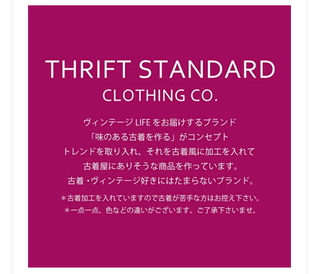 THRIFT SHOPとは古着屋さんのことで、数年着た後でも古着屋さんで販売できるクオリティーと、古着にありそうな雰囲気を作るという2つの意味を込め