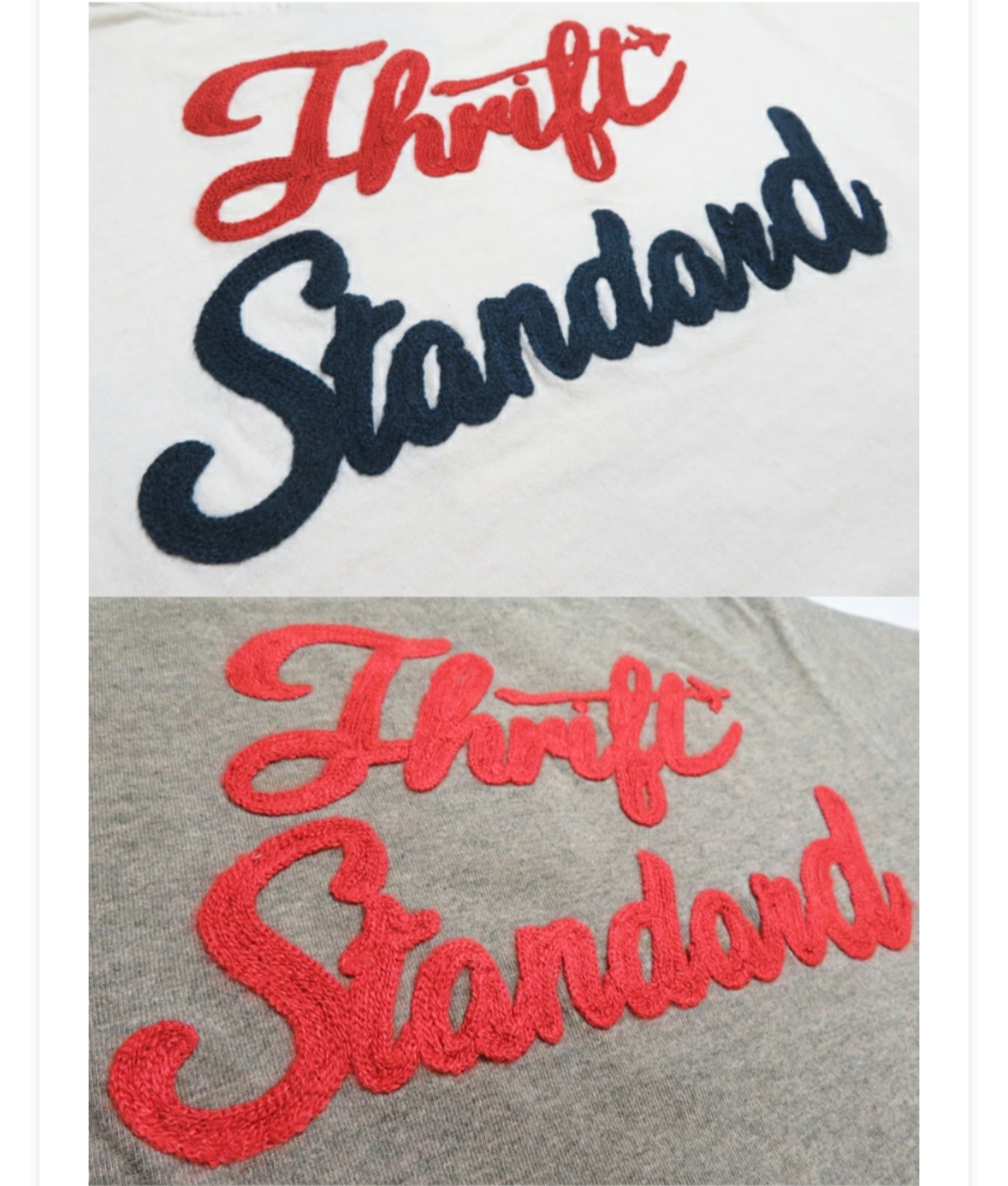 THRIFT SHOPとは古着屋さんのことで、数年着た後でも古着屋さんで販売できるクオリティーと、古着にありそうな雰囲気を作るという2つの意味を込め