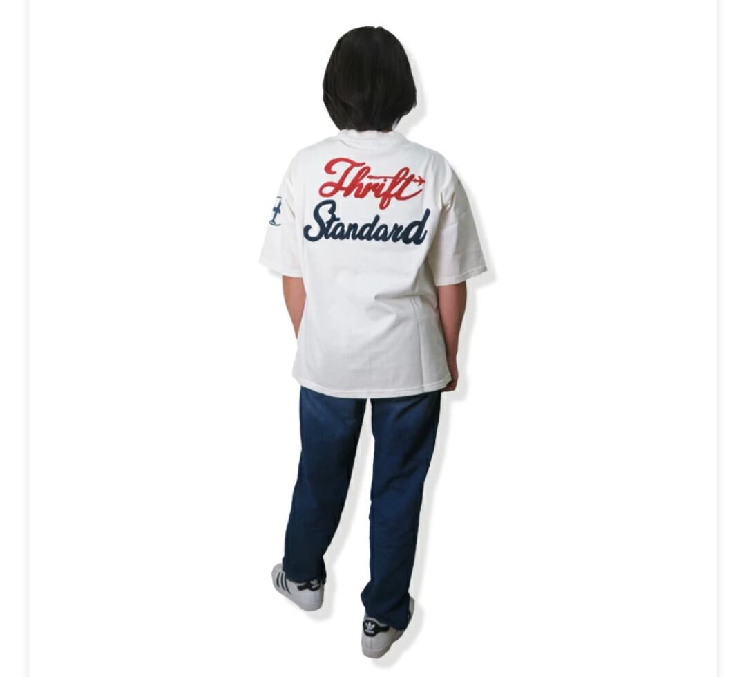 THRIFT SHOPとは古着屋さんのことで、数年着た後でも古着屋さんで販売できるクオリティーと、古着にありそうな雰囲気を作るという2つの意味を込め