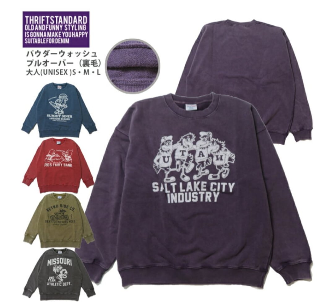 THRIFT STANDARDよりパウダー加工でくたっとした古着風の表情に仕上げたスウェット