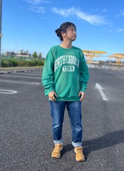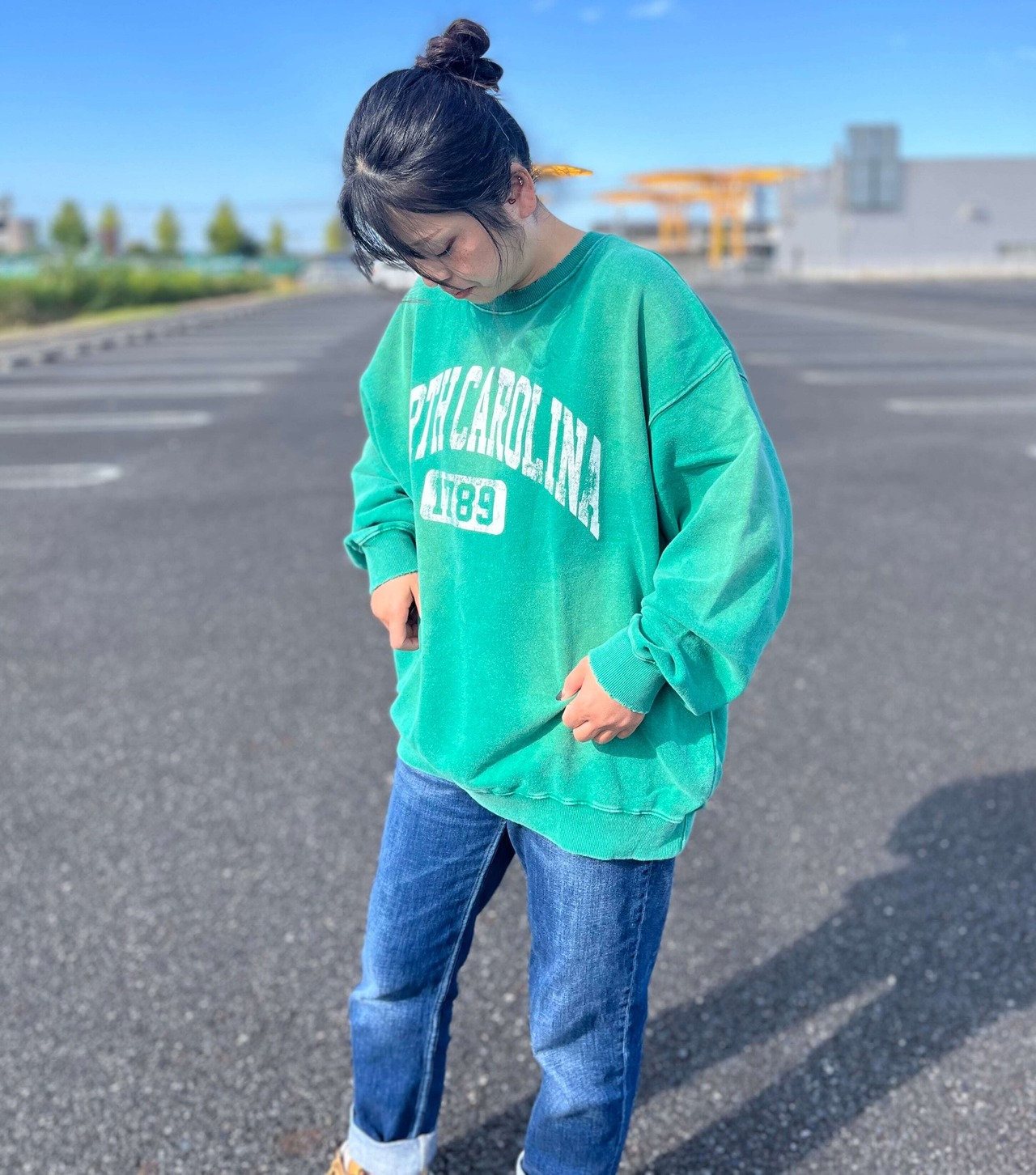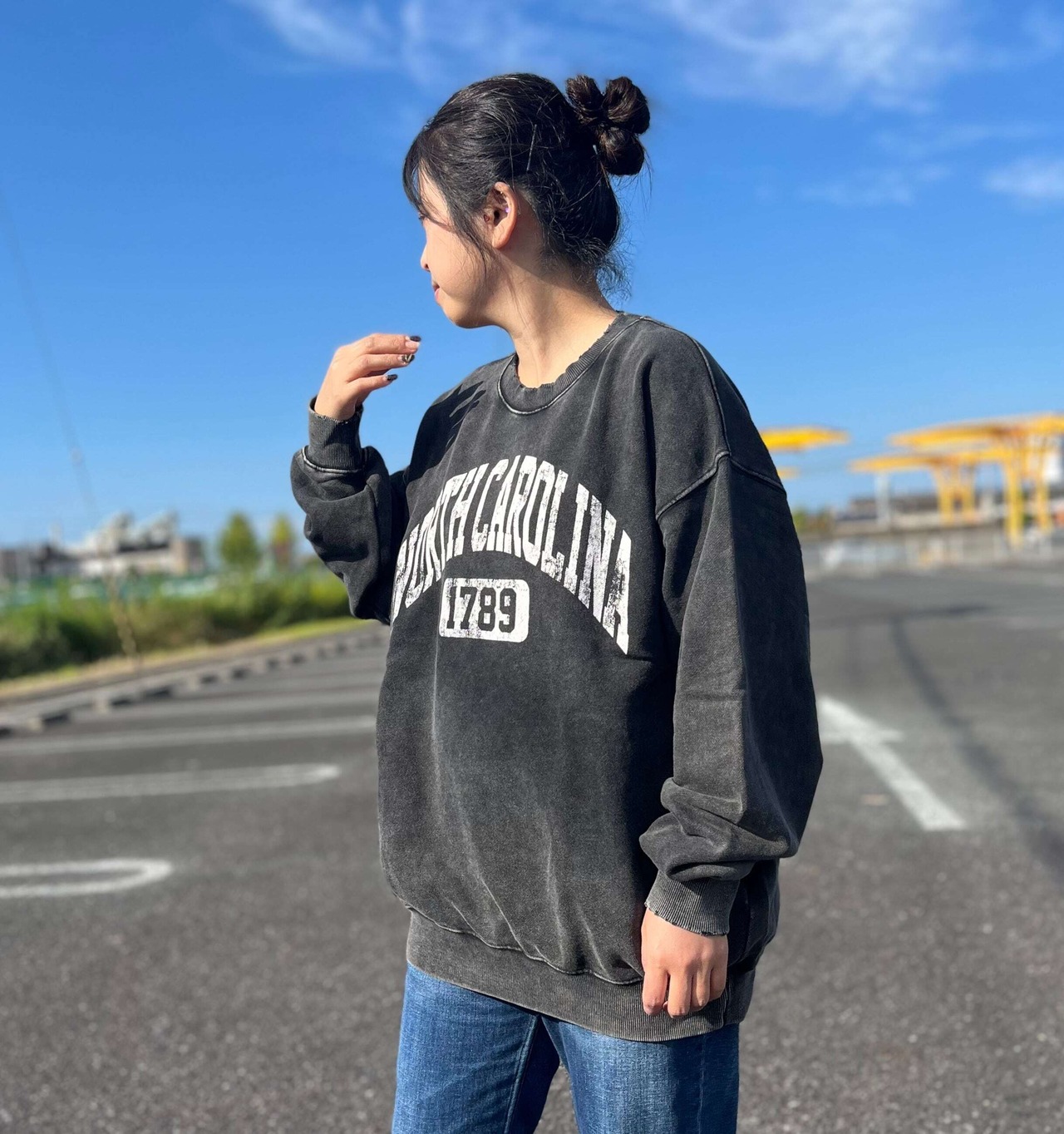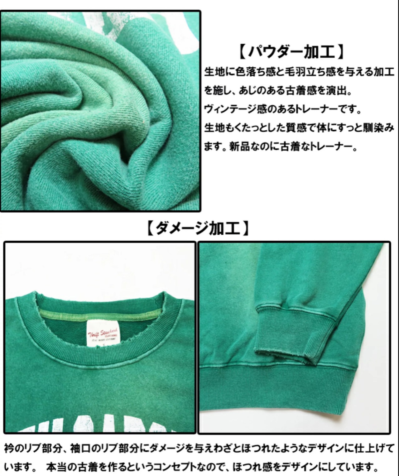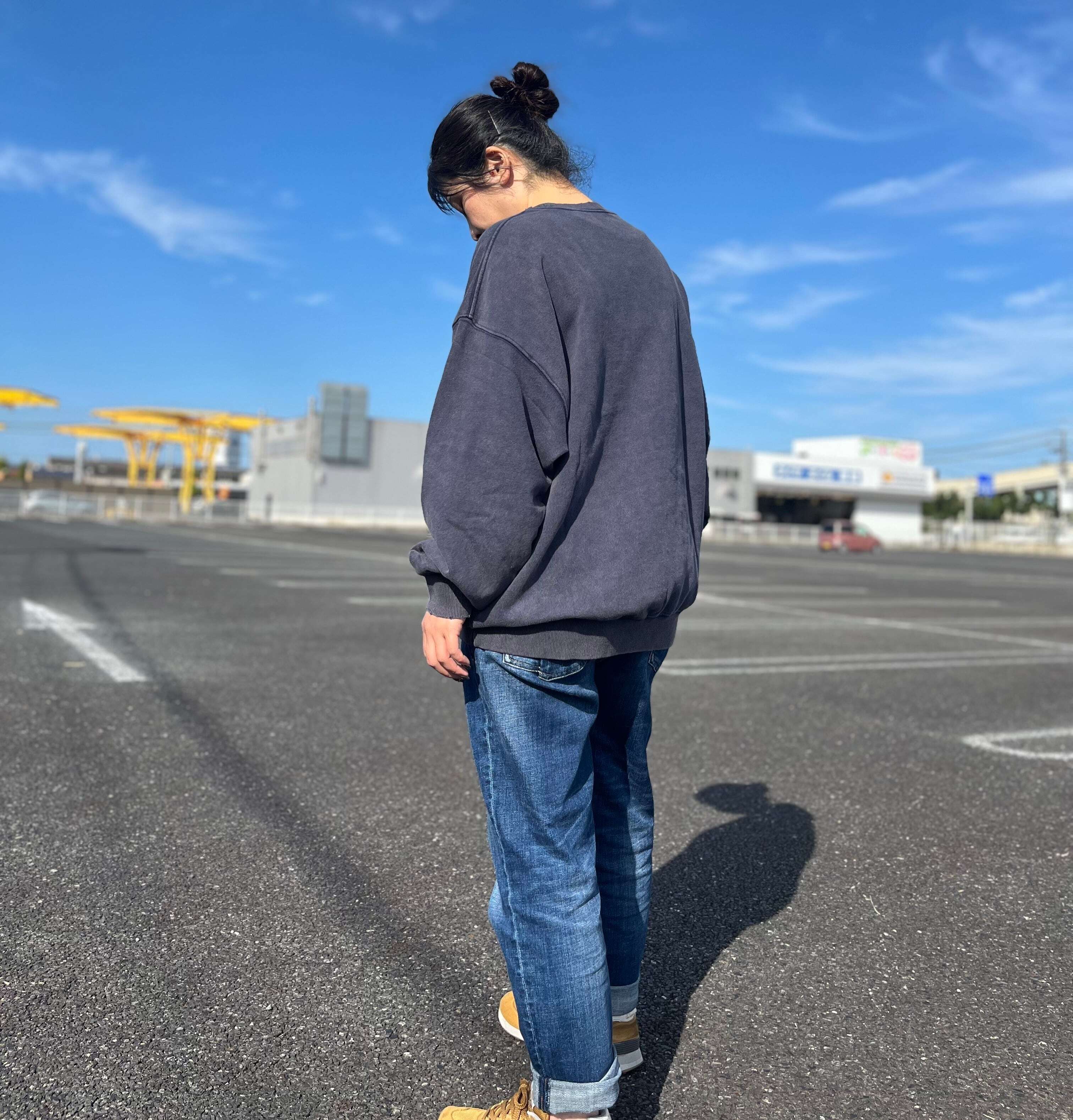 古着を作るというコンセプトに基き、襟はダメージ加工して今までのオーバーダイ加工はせずケミカルウォッシュ加工で仕上げています。