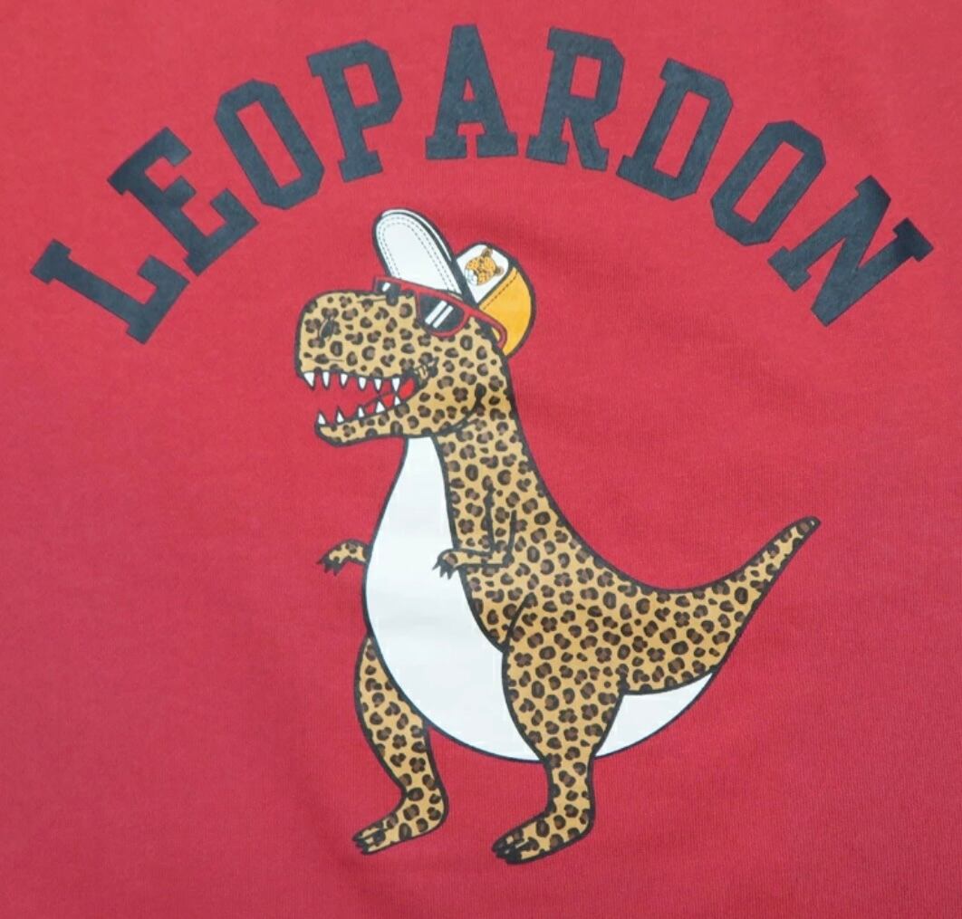 恐竜がヒョウ柄に!意外な組み合わせがかわいいトレーナーです