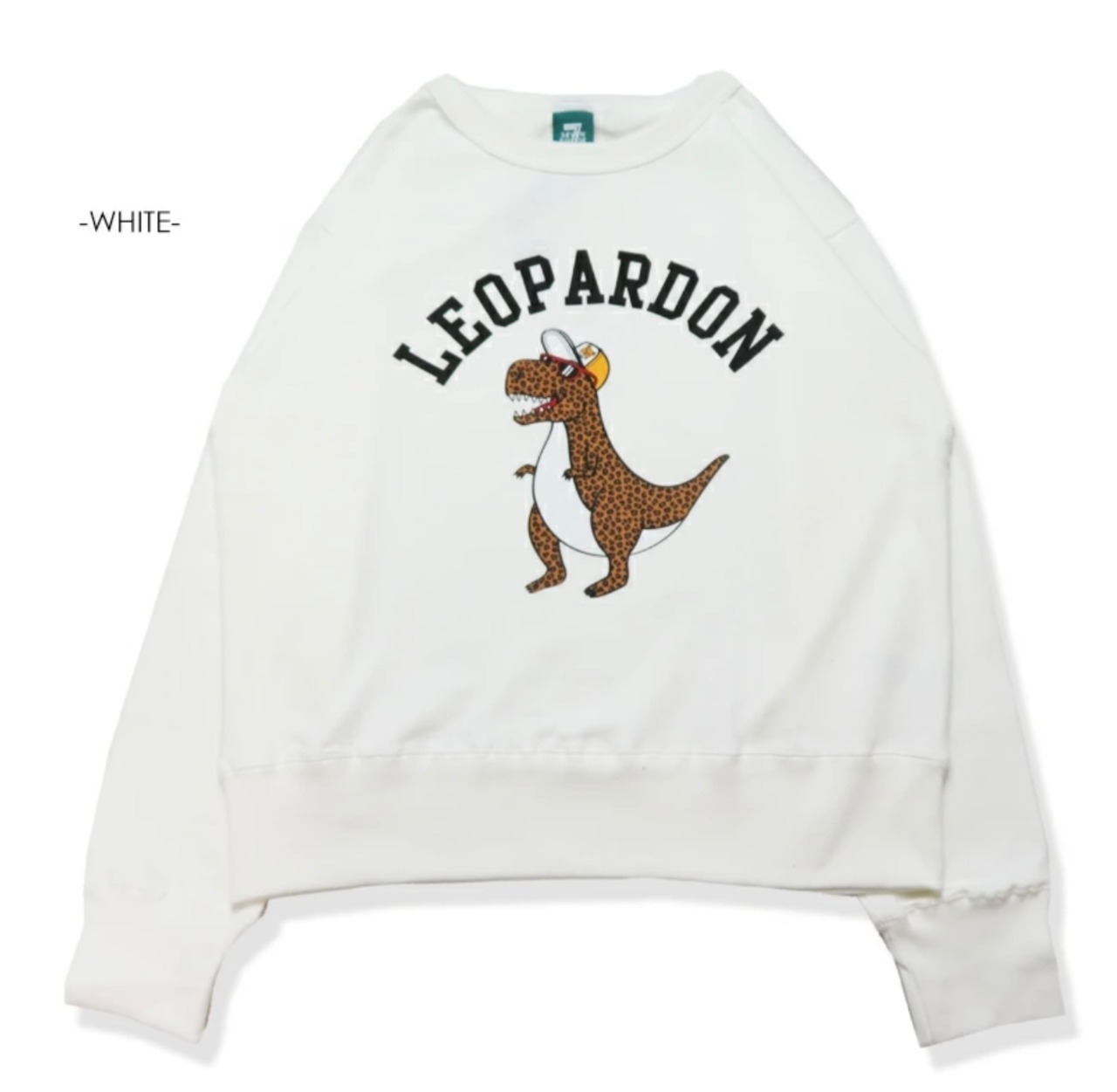 恐竜がヒョウ柄に!意外な組み合わせがかわいいトレーナーです