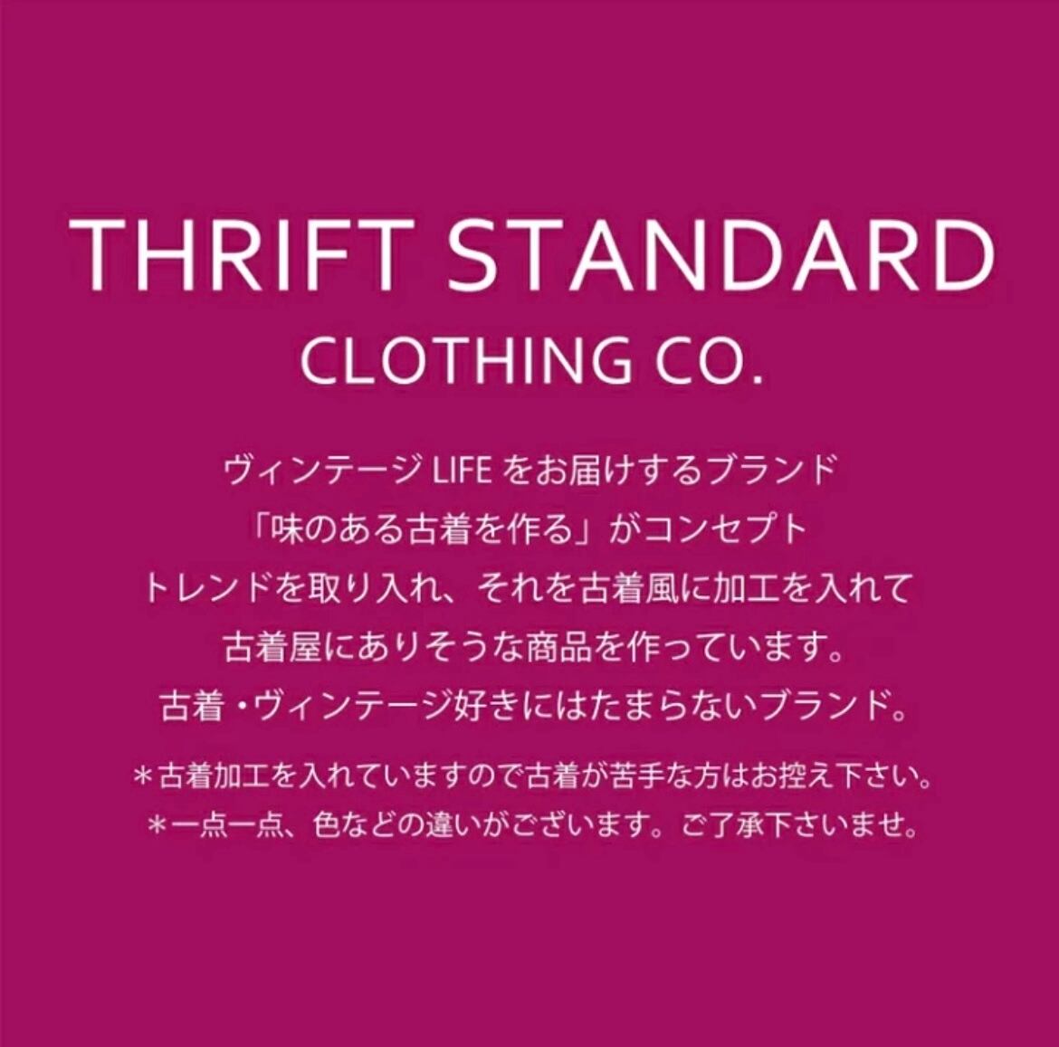 THRIFT SHOPとは古着屋さんの事で、数年着た後でも古着屋さんで販売出来るクオリティと古着にありそうな雰囲気を作るという2つの意味を込め、