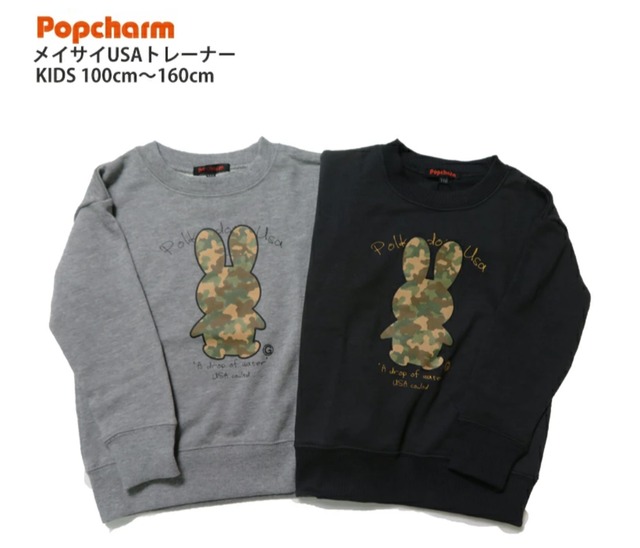 POP CHARMからメイサイUSAトレーナーが入荷! 迷彩柄のおしゃれなうさぎ ストリートテイストがかわいい ☆親子お揃いアイテムです 【POP CHARM】 デザイナーが存在しないブランド 7BRIDGEスタッフ全員でアイデアを出し、面白い!可愛い!と直感で思えるデザインを商品化しています 型に縛られないどこにもないプリントが個性的でオシャレ♪ 親子お揃い、ペアルックも出来ちゃう楽しいブランドです 【サイズ】 Sサイズ 着丈64cm 身幅51cm 肩幅47cm 袖丈59cm Мサイズ 着丈67cm 身幅57cm 肩幅51cm 袖丈61cm Lサイズ 着丈69cm 身幅58cm 肩幅53cm 袖丈63cm 【素材】 本体:ポリエステル65% 綿35%